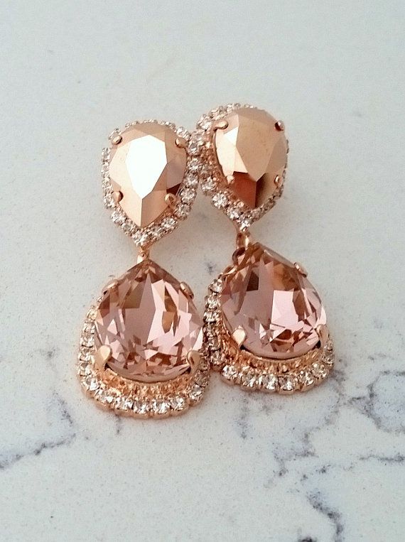 Rose gold earrings design is gaining popularity among millennials. The soft blush tone of rose gold matches beautifully with ivory, champagne, and pastel wedding outfits.