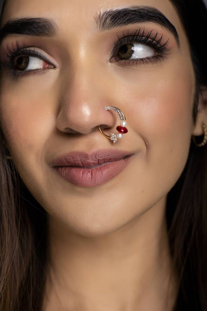 Style Tip: Opt for clip-on naths if you don’t have a piercing. Pair with minimal neck accessories to avoid crowding the face.